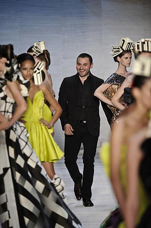 O estilista apresentou um desfile, ou melhor, um show de listras, cores e estampas. Destaque para os vestidos com cintura e ombros marcados, sutiãs floridos e o vestido em xadrez plissado.